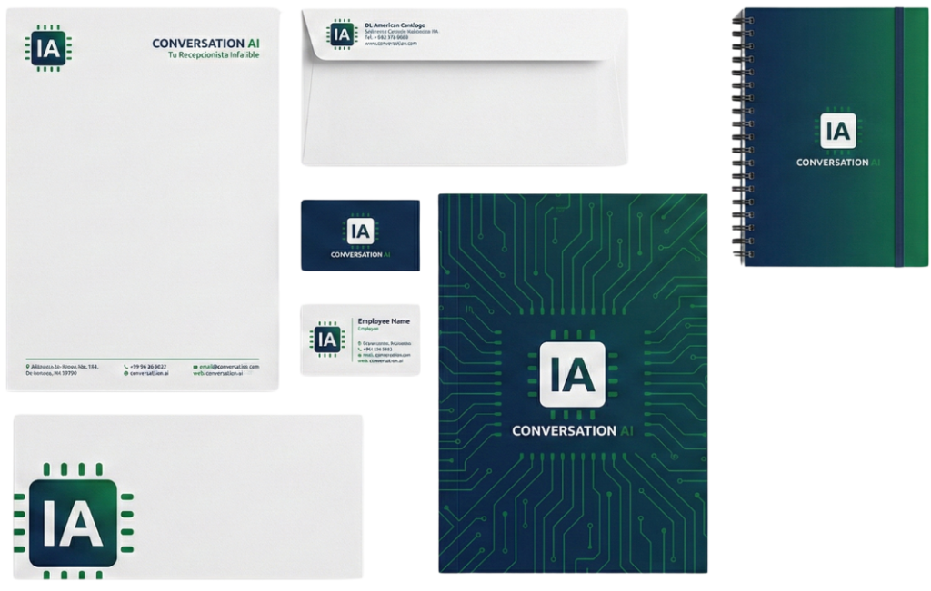 • Inventario de Necesidades: Definimos qué piezas necesitas realmente (Tarjetas, Hoja Membretada, Sobres, Carpetas, Carnets, Firma de Email).