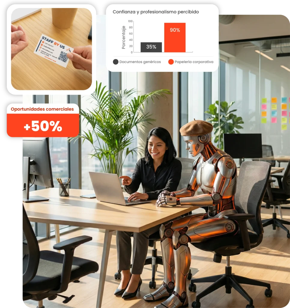 Tu tarjeta de presentación y tus carpetas corporativas se convierten en armas de venta silenciosas.