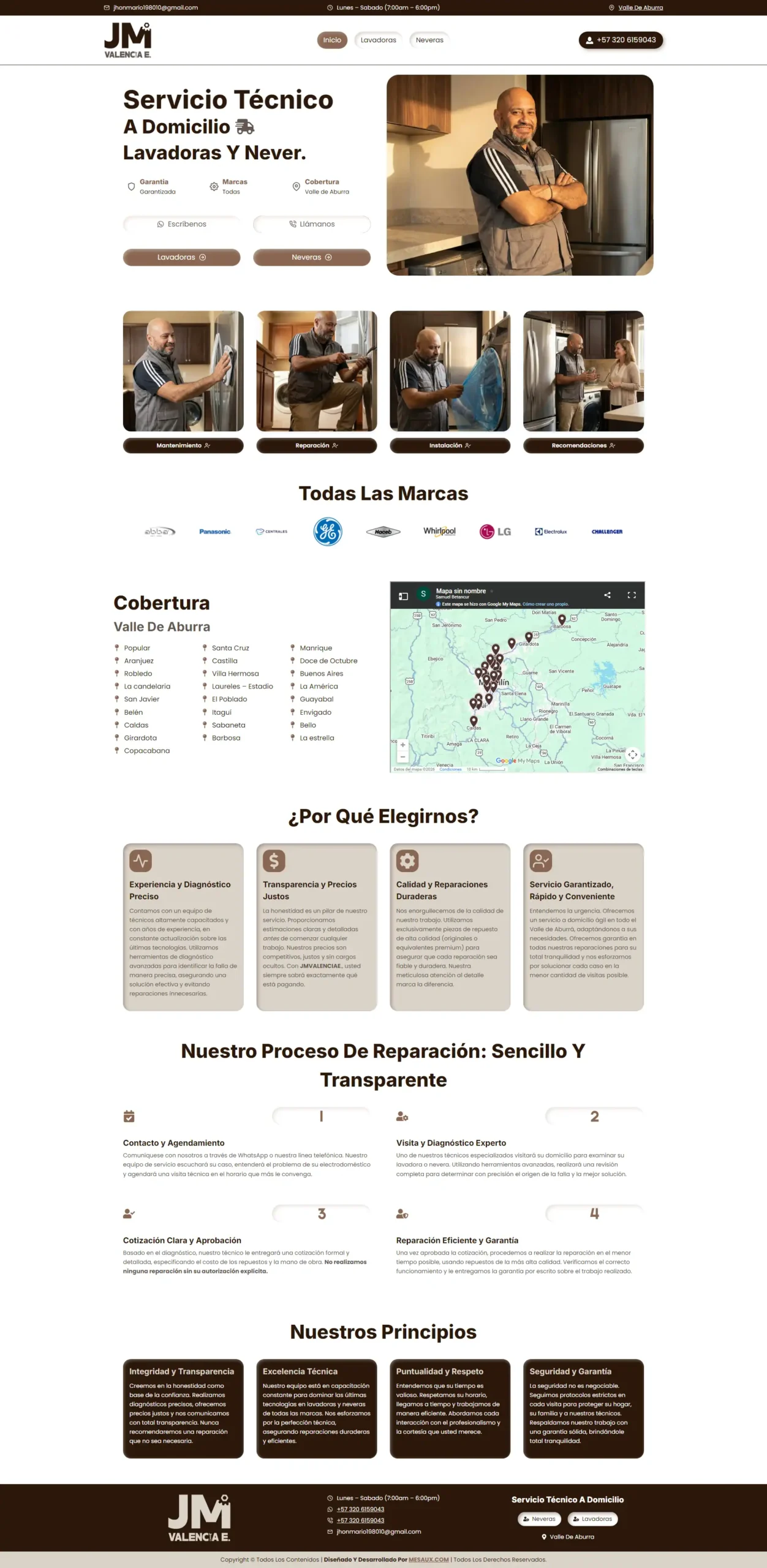 A pesar de su gran experiencia y calidad técnica, JMVALENCIAE dependía tradicionalmente del “voz a voz” y la entrega física de tarjetas de presentación para conseguir clientes en Medellín. El reto principal era dar el salto hacia la digitalización para no quedarse atrás frente a la competencia. Jhon Mario necesitaba una plataforma que modernizara por completo la percepción de su oficio, proyectando una imagen altamente profesional e innovadora que le permitiera captar nuevos clientes a través de internet y generar confianza inmediata en las familias que buscan soluciones urgentes para sus electrodomésticos.