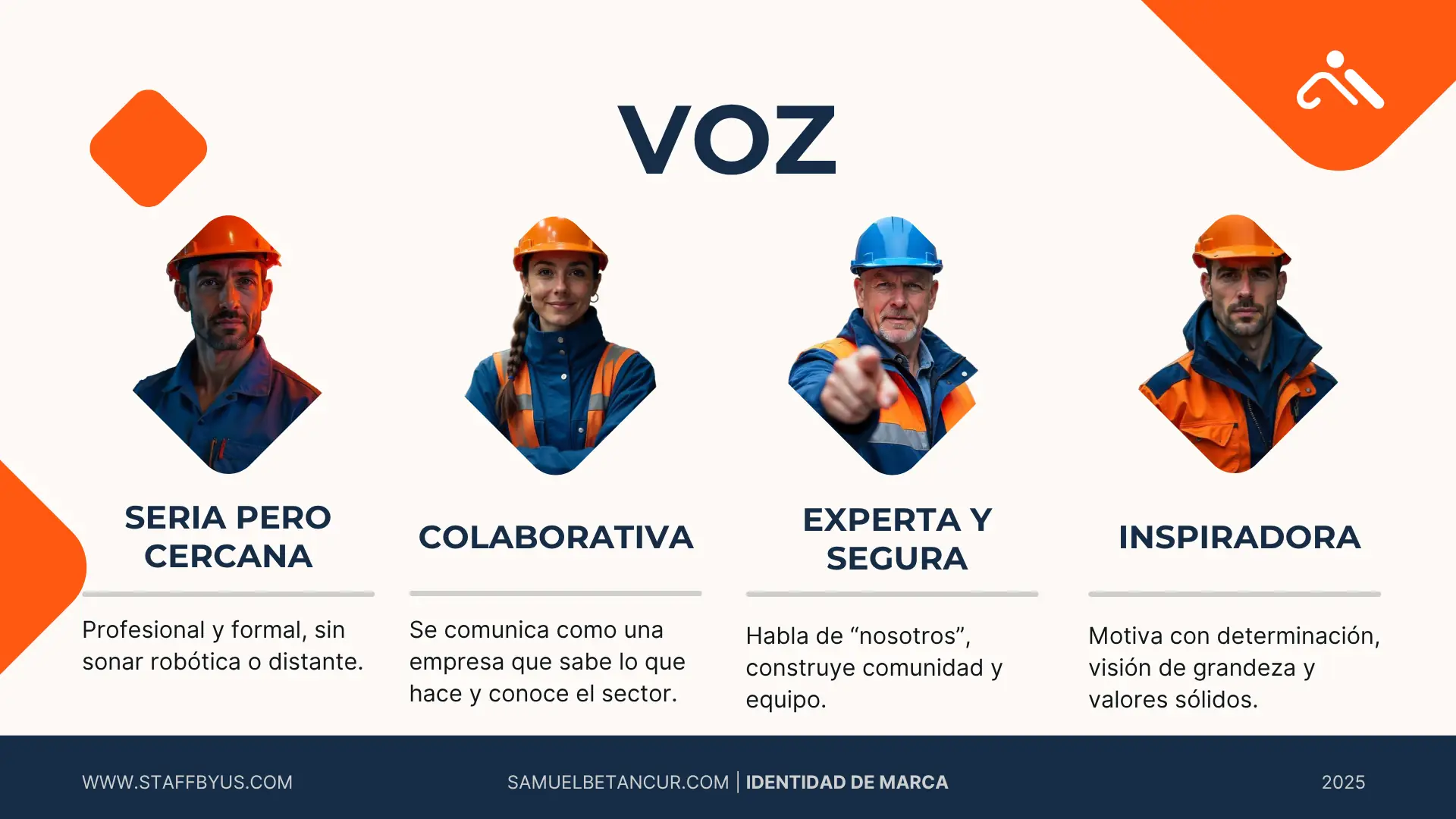 StaffByUs nació con la ambición de irrumpir en el exigente mercado industrial de los Estados Unidos, compitiendo directamente con firmas de trayectoria global. El desafío era monumental: necesitaban una arquitectura de marca completa que no solo se viera profesional, sino que proyectara la solidez y el rigor de una “Gran Corporación” desde el primer día. El objetivo era crear una identidad visual y conceptual que equilibrara la firmeza del sector industrial con la agilidad de la innovación tecnológica, logrando inspirar confianza absoluta en contratistas de alto nivel.
